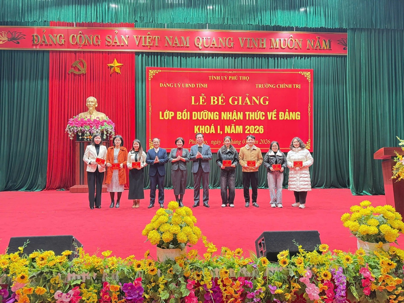 Ngày 23/01, Đảng ủy UBND tỉnh phối hợp với Trường Chính trị tỉnh tổ chức Lễ bế giảng Lớp Bồi dưỡng nhận thức về Đảng khóa I, năm 2026 tại Hội trường Trường Cao đẳng Kỹ thuật – Công nghệ Vĩnh Phúc. Dự buổi lễ có các đồng chí: Đỗ Thị Ngọc Ánh - Phó Bí thư Đảng ủy UBND tỉnh; đồng chí...