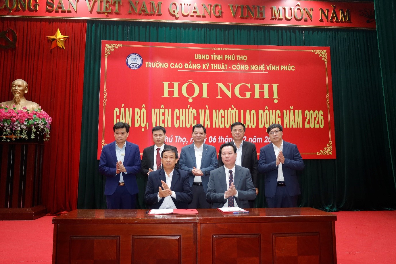 Sáng ngày 06/02/2026, tại Hội trường lớn Trường Cao đẳng Kỹ thuật – Công nghệ Vĩnh Phúc, nhà trường đã long trọng tổ chức Hội nghị cán bộ, viên chức và người lao động năm 2026.