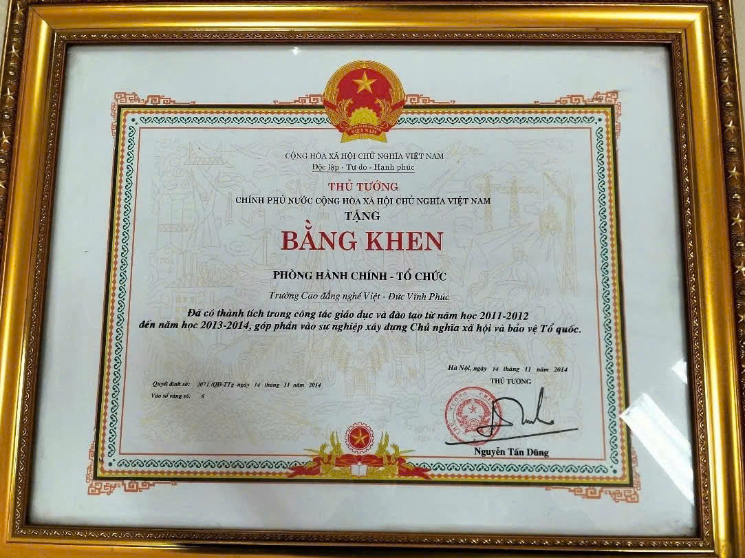 - Bằng khen của Thủ tướng Chính phủ năm 2014