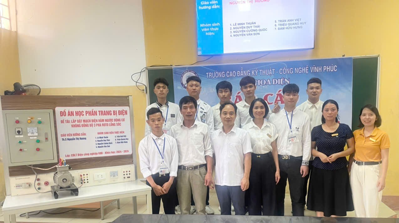 Thực hiện kế hoạch đào tạo năm học 2024 - 2025, ngày 07 tháng 6 năm 2025, Khoa Điện đã tổ chức cho sinh viên lớp CĐ ĐCN K8B chuyên ngành Điện công nghiệp bảo vệ thành công đồ án học phần Trang bị điện. Tham dự buổi bảo vệ đồ án học phần có các thầy, cô giáo trong Hội đồng bảo vệ, các giảng viên và sinh viên của Khoa.