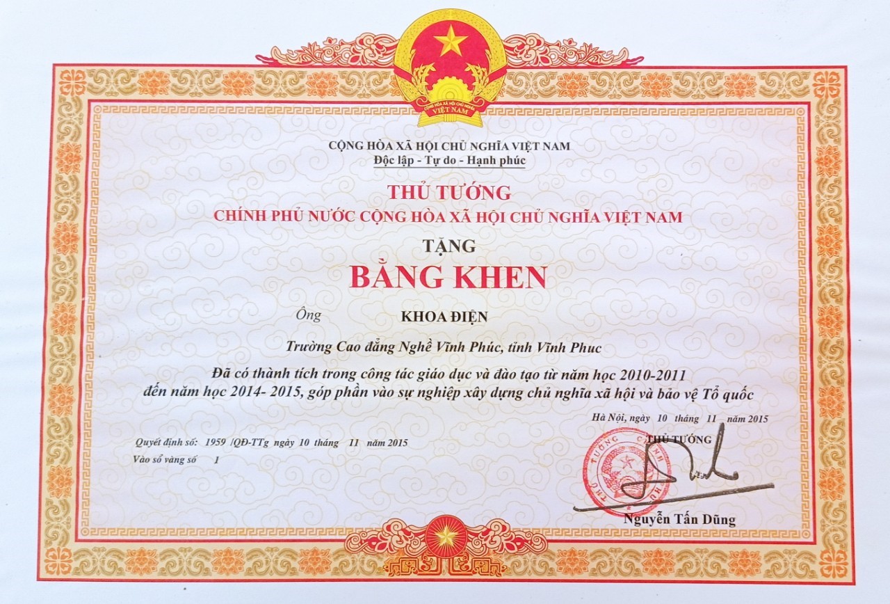 Bằng khen của Thủ Tướng Chính phủ năm 2015