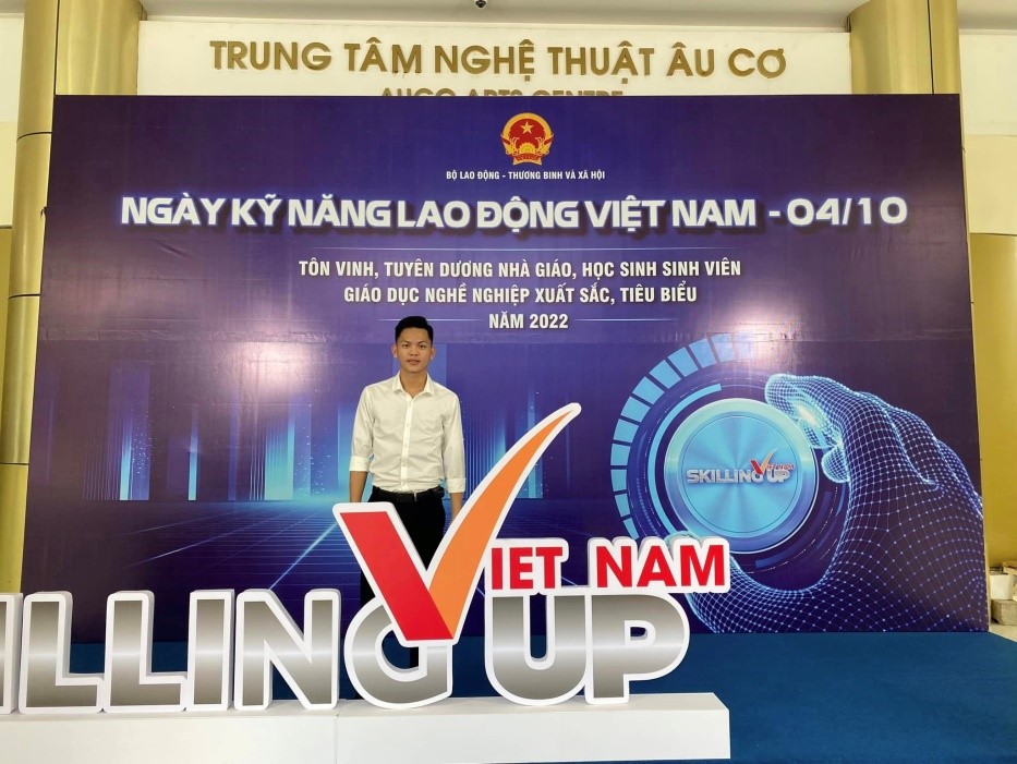 Sinh viên Lương Văn Tiến Huy chương bạc nghề Lắp cáp mạng thông tin